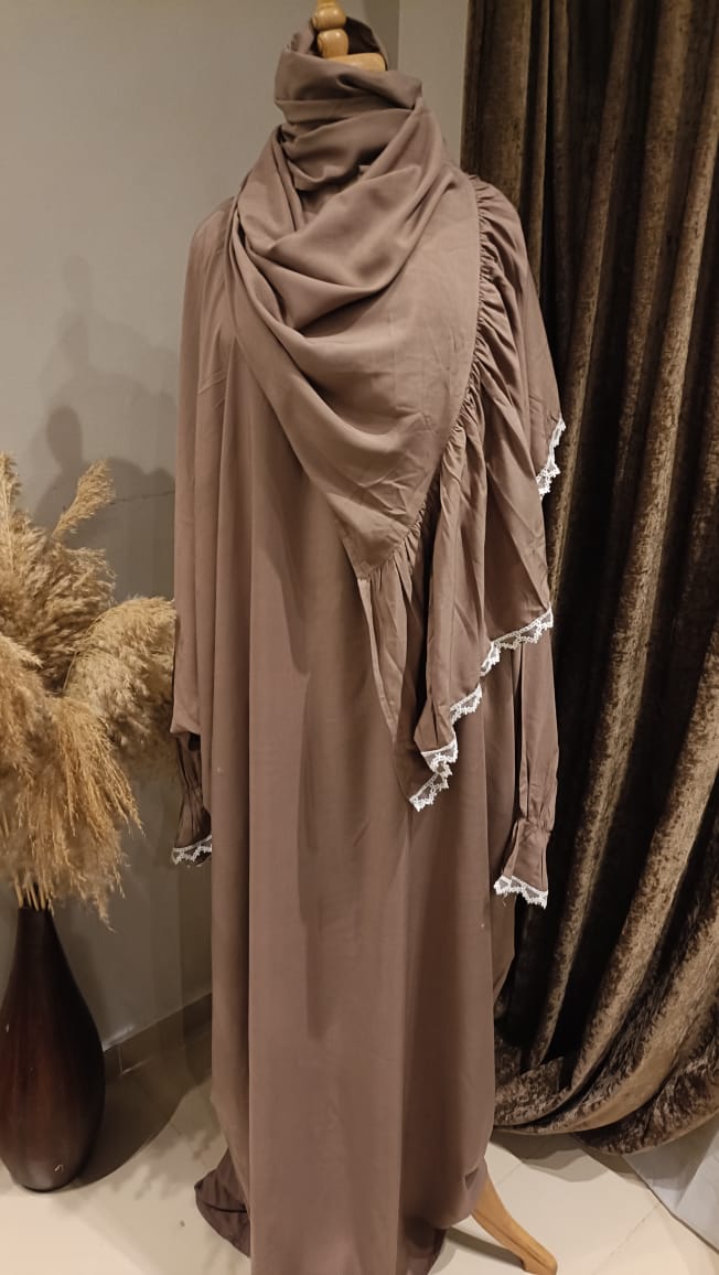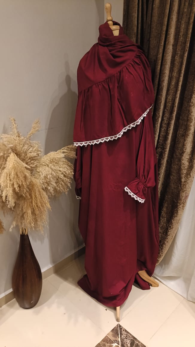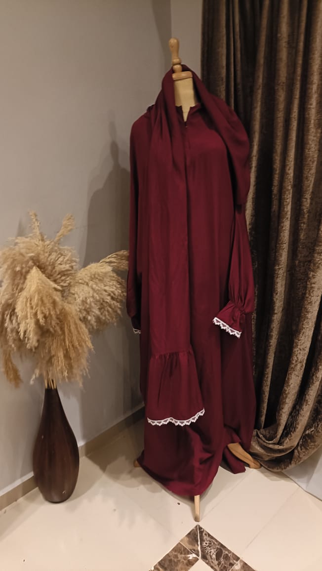 وان سايز واسع جدا وفضفاض وطويل والطرحه عريضه